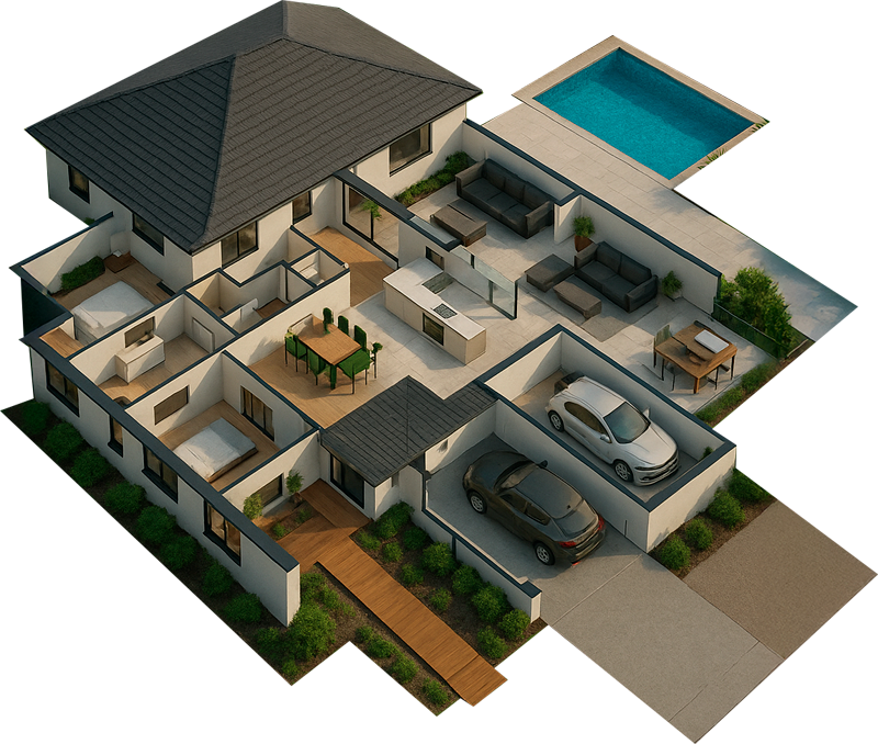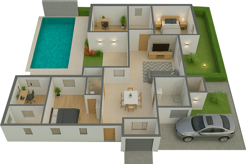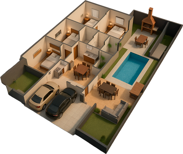 Con un terreno de 250 m² puedes construir una casa muy funcional y bien distribuida. Este tamaño permite incluir 2 o 3 recámaras, sala, cocina, comedor, cochera para uno o dos autos y un patio cómodo para convivir.